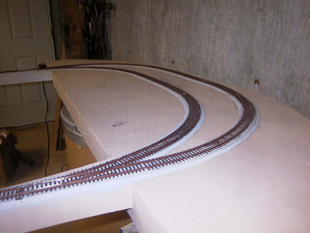 glue and spring clamps, cork painted grey, Atlas code 83 flex track and
